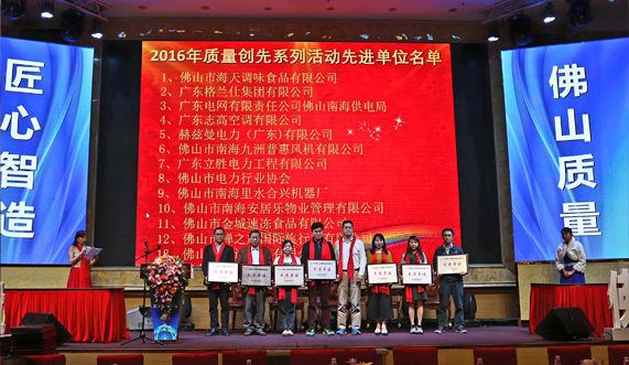我司被評為“2016年佛山市質量創新管理活動先進單位”